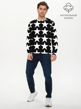 Мужской лонгслив базовый / Белые звёзды на чёрном фоне