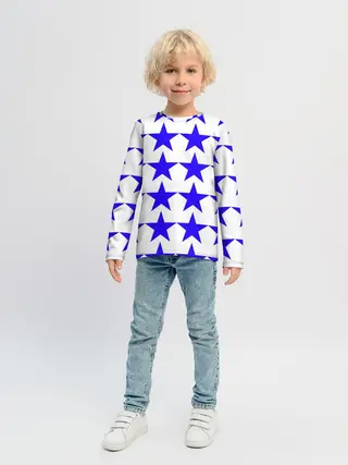 Мужской лонгслив базовый / Синие звёзды на белом фоне
