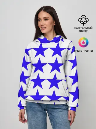 Худи мужской база хлопок / Синие звёзды на белом фоне