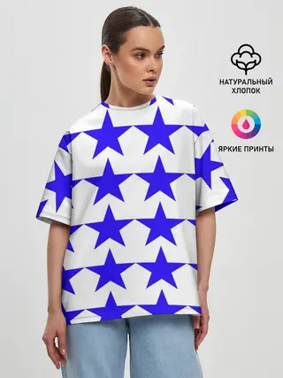 Женская футболка оверсайз / Синие звёзды на белом фоне