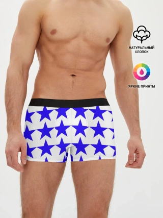 Мужские трусы боксеры / Синие звёзды на белом фоне