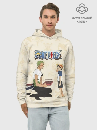 Худи мужской база хлопок / Ророноа Зоро и малыш Манки Д. Луффи