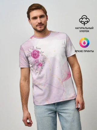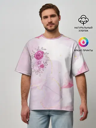 Мужская футболка оверсайз / Цветы роспись акварелью