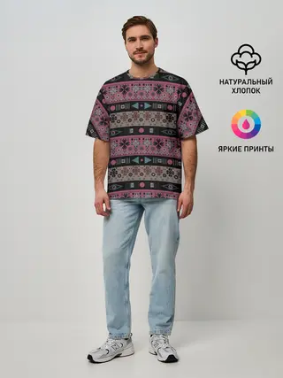Мужская футболка оверсайз / Этнический полосатый орнамент