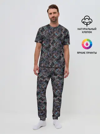 Мужская пижама с брюками / Коричневый абстрактный узор