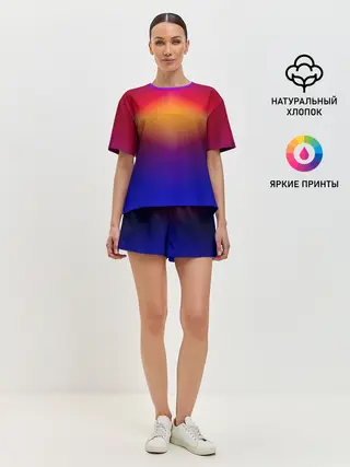 Женская футболка оверсайз / Размытый оранжево-фиолетовый
