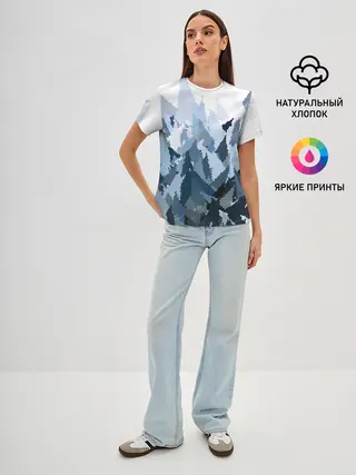 Женская футболка оверсайз / Абстрактная мазаика витраж