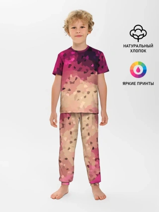 Детская пижама с брюками / Бежево-малиновый абстрактный