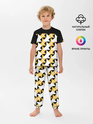 Мужская футболка оверсайз / Черно-желтый геометрический