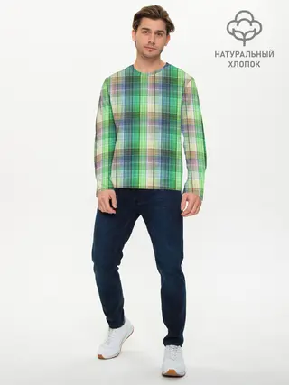 Мужской лонгслив базовый / Зеленый клетчатый узор
