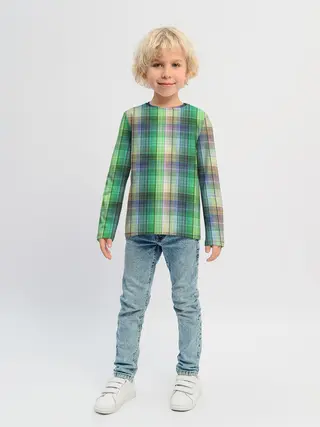 Детский лонгслив / Зеленый клетчатый узор
