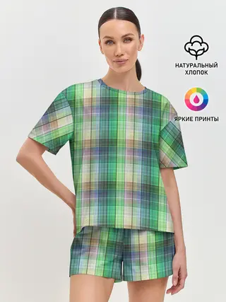 Женская пижама с шортами / Зеленый клетчатый узор