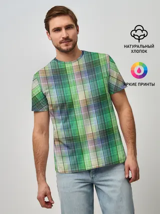 Мужская базовая футболка / Зеленый клетчатый узор
