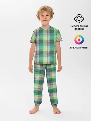 Детская пижама с брюками / Зеленый клетчатый узор