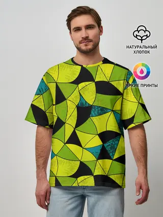 Мужская футболка оверсайз / Гранжевый яркий зеленый