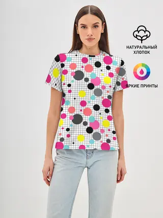 Женская базовая футболка / Горох разноцветный.
