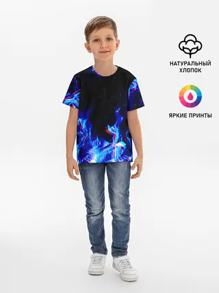 Детская базовая футболка / СИНИЙ ОГОНЬ ГЛИТЧ | BLUE FIRE GLITCH