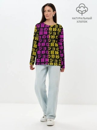Лонгслив женский. Хлопок / Иеороглифы джоджо