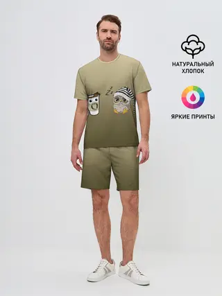 Мужской костюм с шортами / сонная сова и кофе идеальное