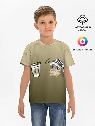 Детская базовая футболка / сонная сова и кофе идеальное