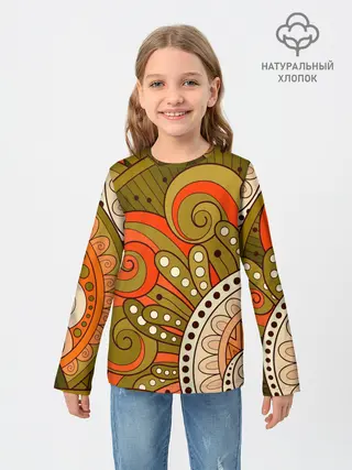 Мужской лонгслив базовый / Детский оранжево-болотный