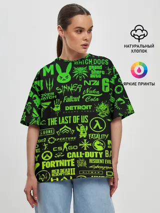 Женская футболка оверсайз / ЛОГОТИПЫ ИГР