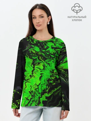 Лонгслив женский. Хлопок / Тёмные зеленые краски