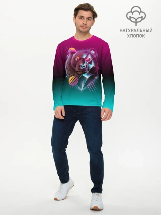 Мужской лонгслив базовый / RETRO CYBER BEAR NEON