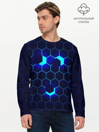 Мужской лонгслив базовый / СИНИЕ СОТЫ В НЕОНЕ