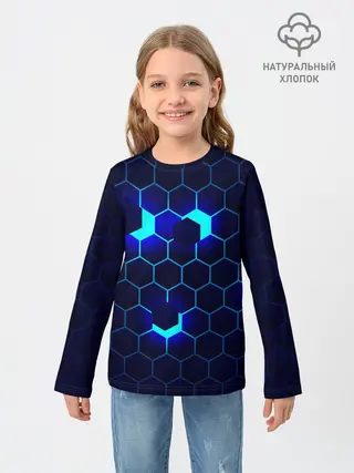 Детский лонгслив / СИНИЕ СОТЫ В НЕОНЕ