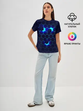 Женская базовая футболка / СИНИЕ СОТЫ В НЕОНЕ