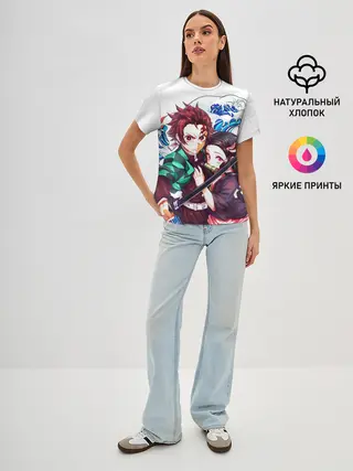 Женская футболка оверсайз / Клинок рассекающий демонов
