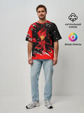 Мужская футболка оверсайз / HAZBIN HOTEL НОВОГОДНИЙ.