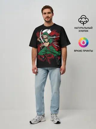 Мужская футболка оверсайз / Зеленый воин One Piece