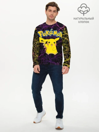 Мужской лонгслив базовый / Цветные молнии Пикачу