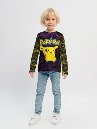 Детский лонгслив / Цветные молнии Пикачу
