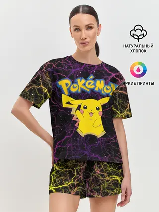 Женская пижама с шортами / Цветные молнии Пикачу