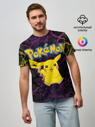 Мужская базовая футболка / Цветные молнии Пикачу