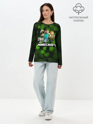 Лонгслив женский. Хлопок / Minecraft / Майнкрафт