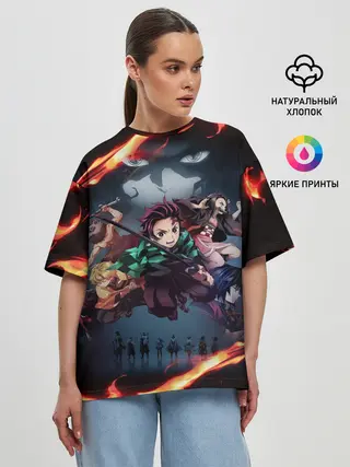 Женская футболка оверсайз / Рассекающий демонов в огенных лучах