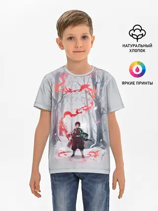 Детская базовая футболка / KIMETSU NO YAIBA красный след