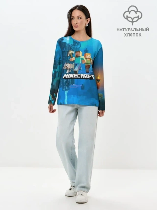 Лонгслив женский. Хлопок / Minecraft / Майнкрафт
