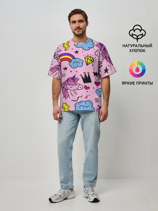 Мужская футболка оверсайз / Единороги
