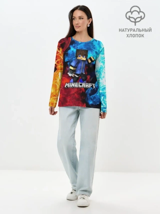 Лонгслив женский. Хлопок / Minecraft / Майнкрафт