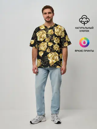 Мужская футболка оверсайз / Golden Roses