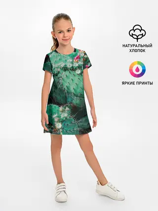 Мужская футболка оверсайз / кактусы с цветами реализм
