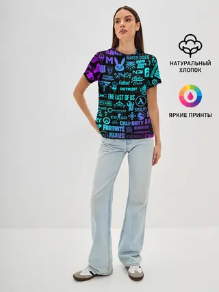 Женская базовая футболка / ЛОГОТИПЫ ИГР НЕОН / NEON GAMES LOGO