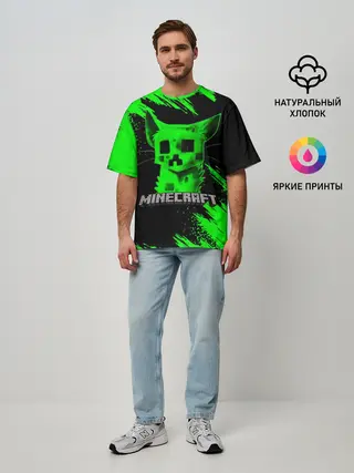 Мужская футболка оверсайз / MINECRAFT CREEPER CAT