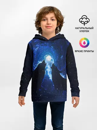 Худи мужской база хлопок / Волки силуэты звездное небо