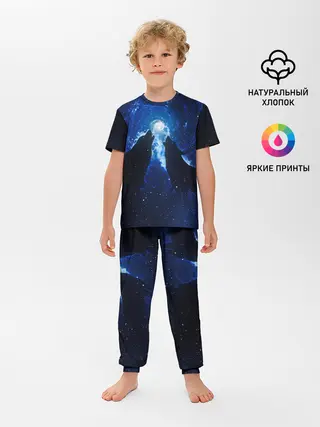 Мужская пижама с брюками / Волки силуэты звездное небо
